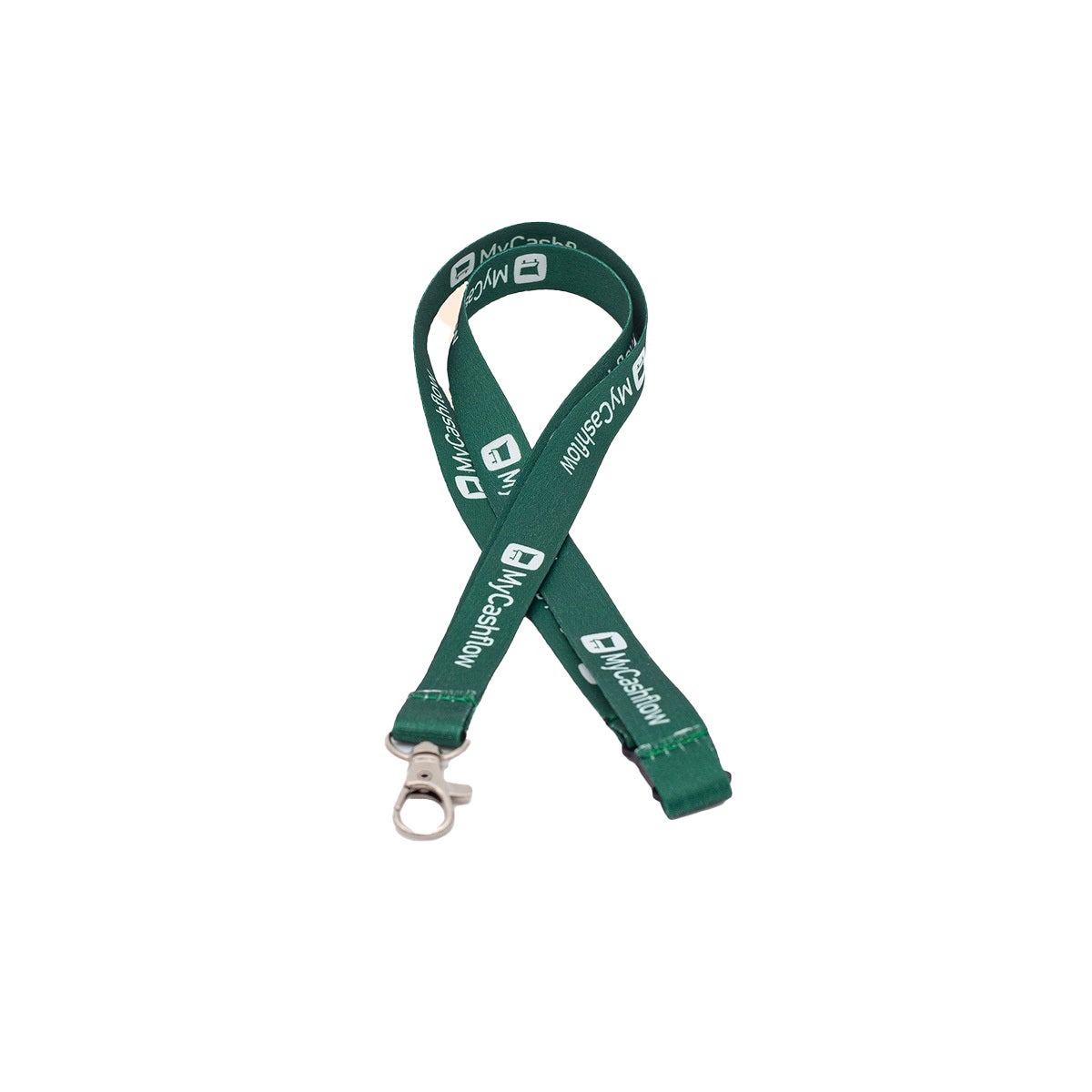 A practical key lanyard for everyday use. The green key lanyard features a white MyCashflow logo print, giving it a clear image. Perfect for keys, access cards, or other important items.